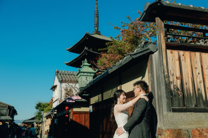 まだ誰もいない祇園や八坂の街並みを独り占めして、お二人だけの特別なお写真を残します。