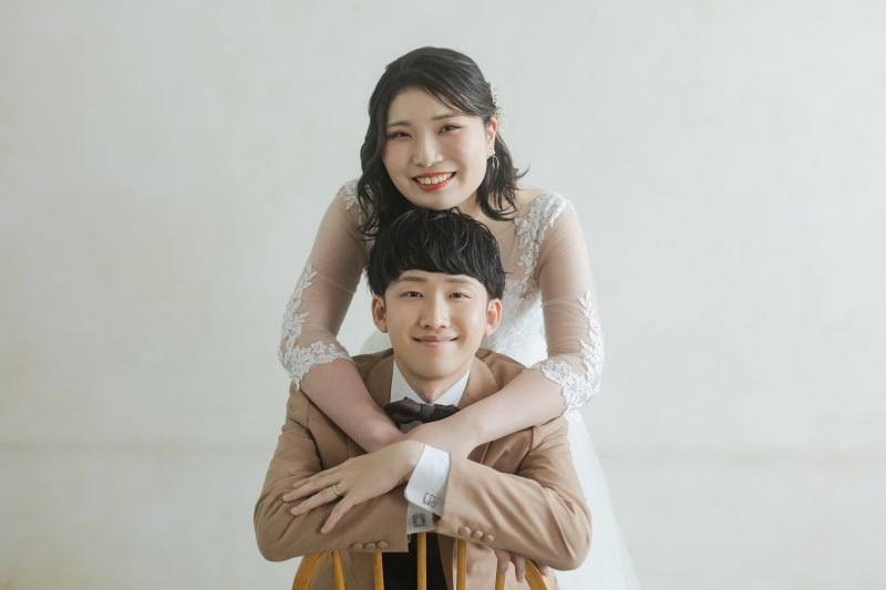 スタジオ撮影の特権として、お二人だけの空間を贅沢に使って、思い思いのポーズを楽しんでいただけます。