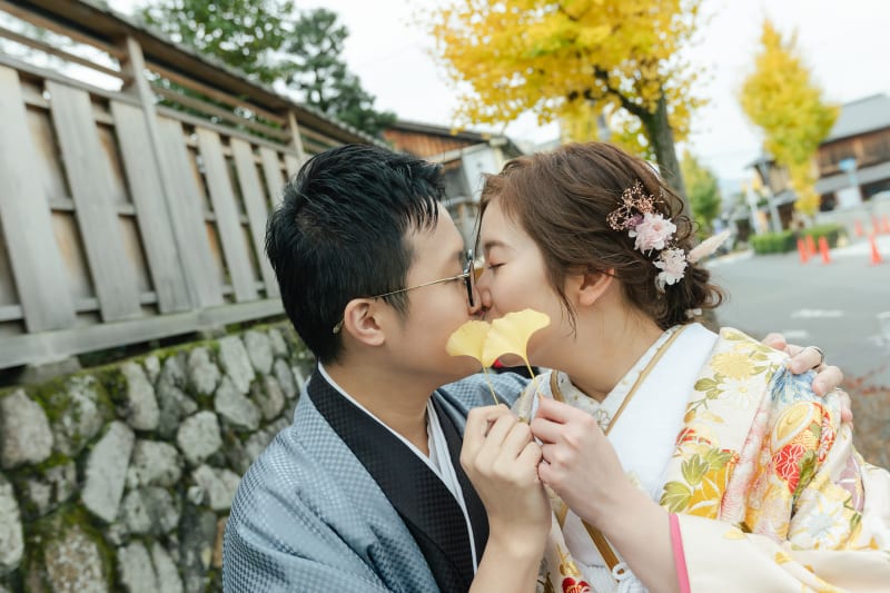 撮影の最後には、銀杏の葉を使った愛らしいカットを
