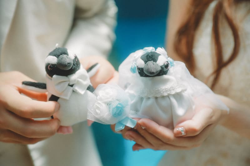 お二人が大好きなペンギンちゃんもおめかしして登場!