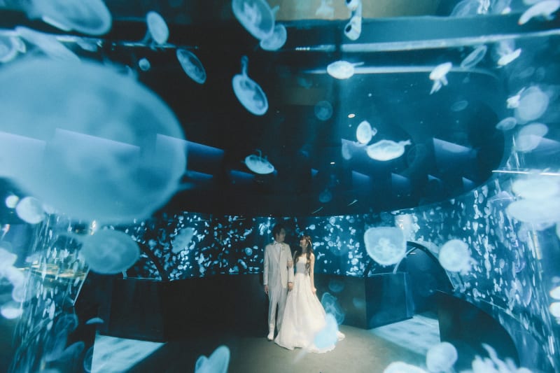 幻想的な京都水族館で紡ぐ、絆のウェディングフォト