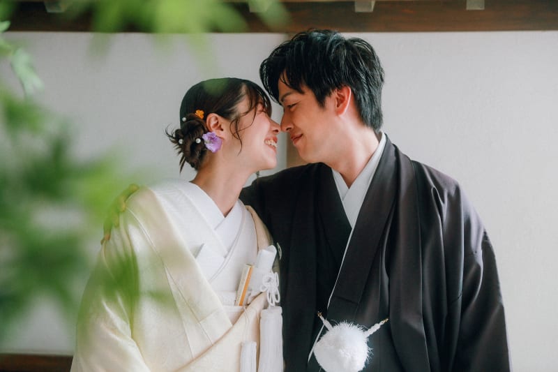 お決めになったお衣装は白無垢と紋付き