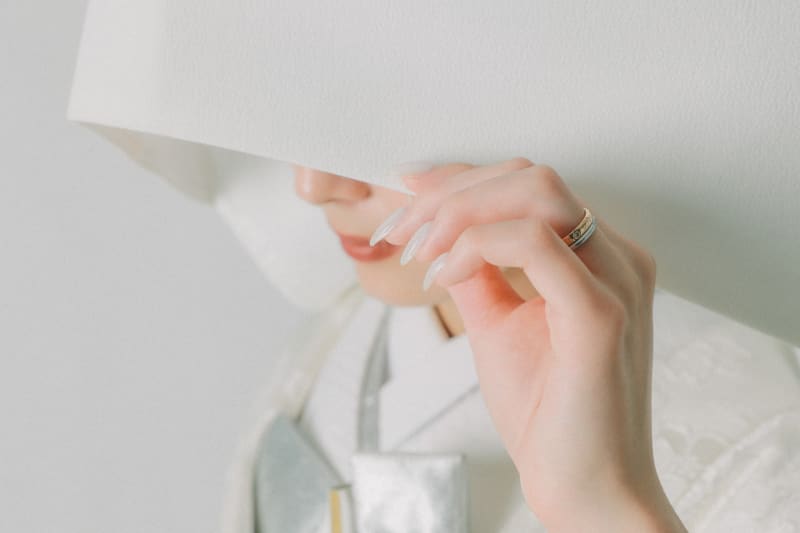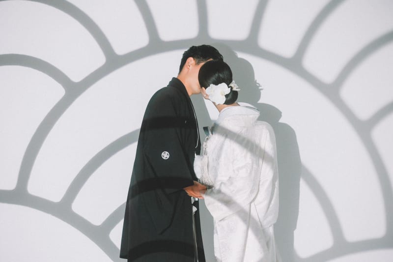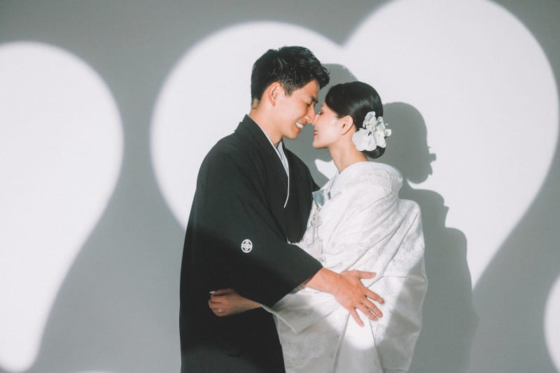 新婦様が真横、新郎様は体が正面でお顔だけが横になっていることで