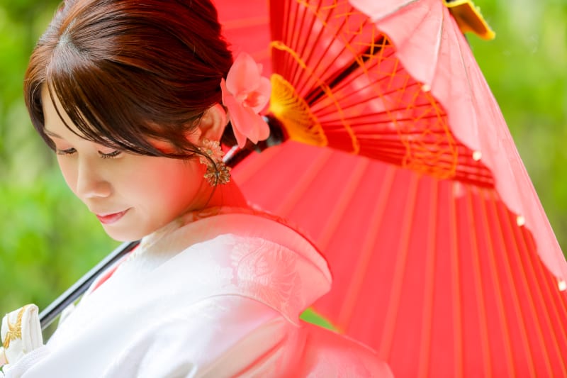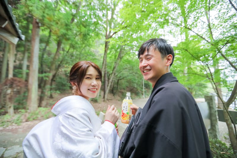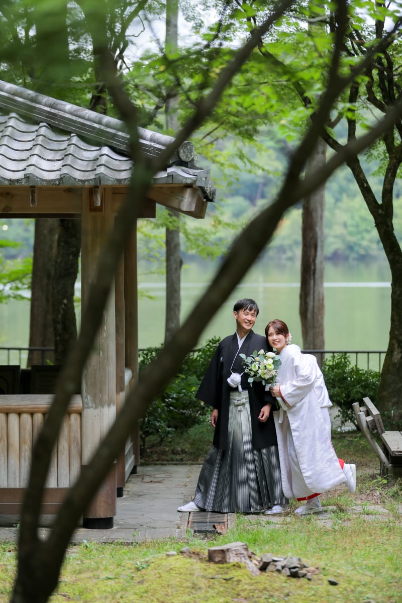 白無垢と紋付姿はとても素敵で、お二人の新しい門出にふさわしい装いでした。