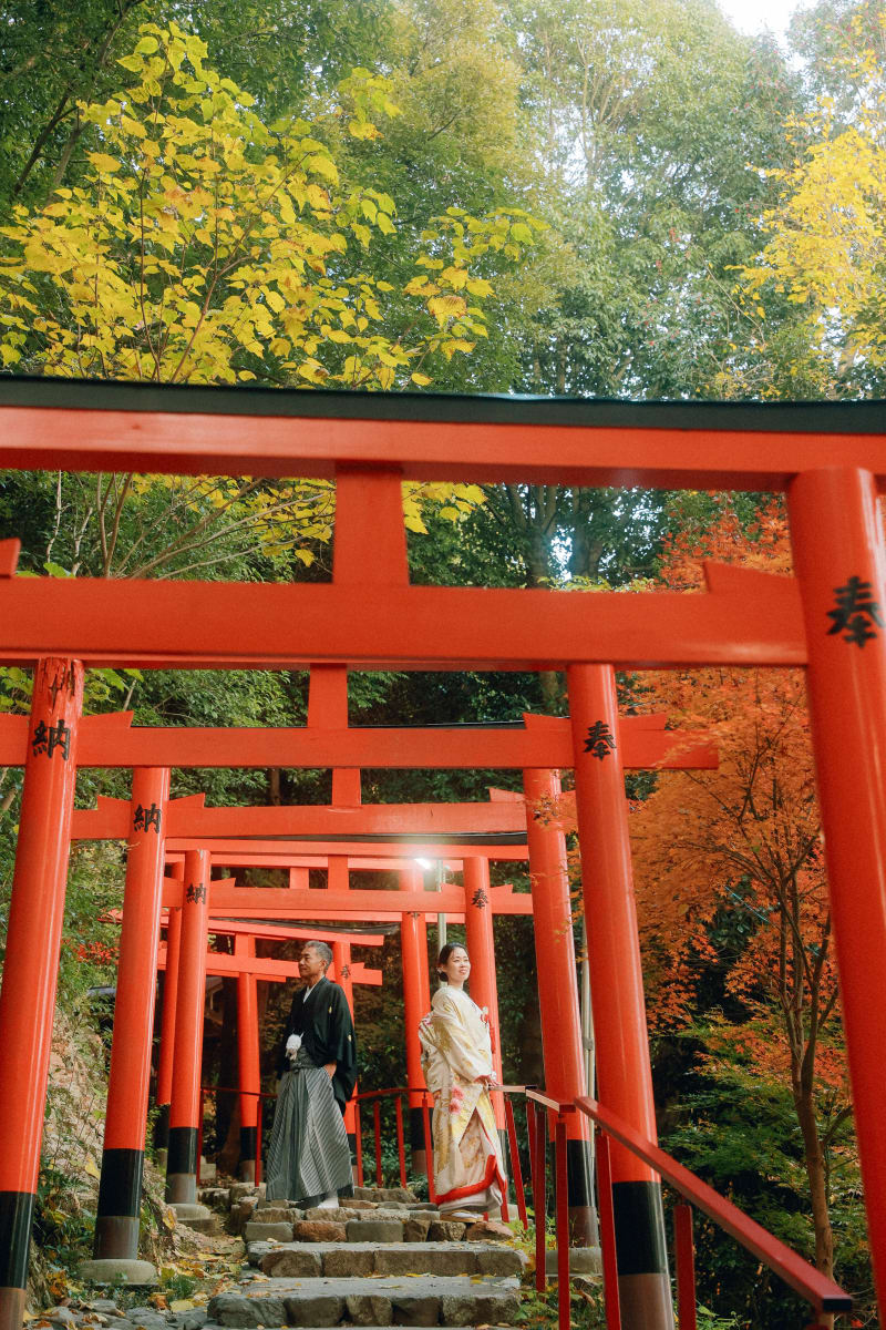 上賀茂神社での秋のウェディングフォト