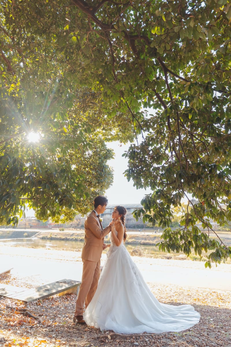 たまたま木がフレームのようになっており、まるでお二人が絵画から飛び出してきたかのような瞬間でした!