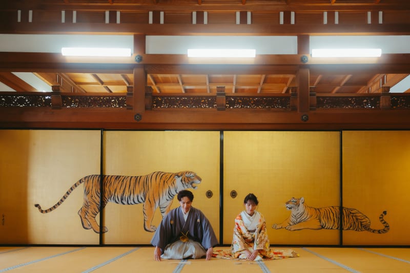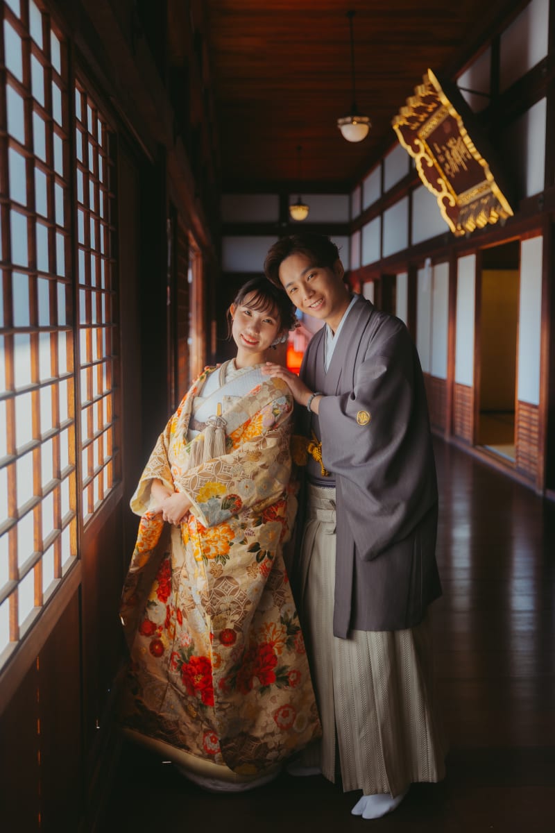 お寺と和装の相性がとても良く、お二人の衣装が映える1枚に!