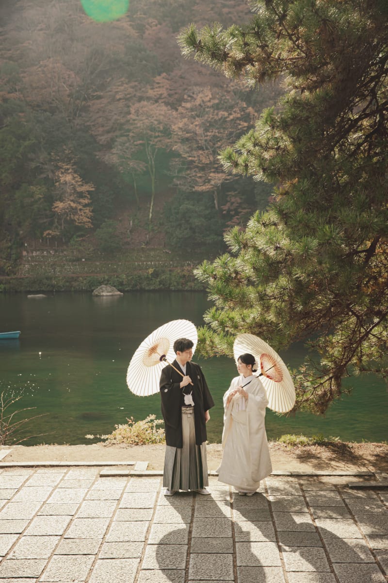 竹林から紅葉まで、嵐山で叶える白無垢ロケーションフォト