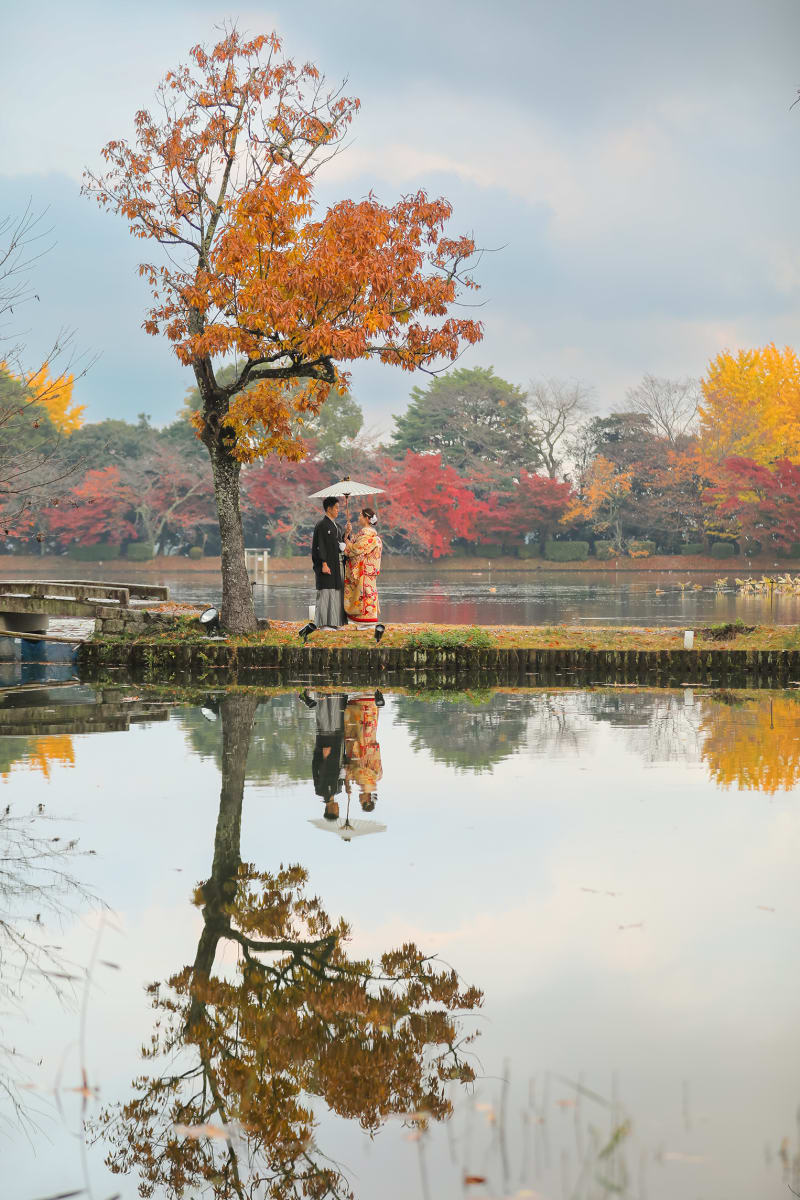 大覚寺の大沢池での撮影です。ロケーションならではの引きのショットも素敵ですね!
