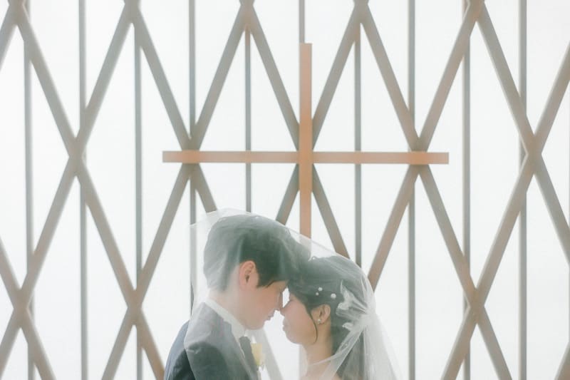 教会の雰囲気漂うエリアでベールを生かした1ショットを