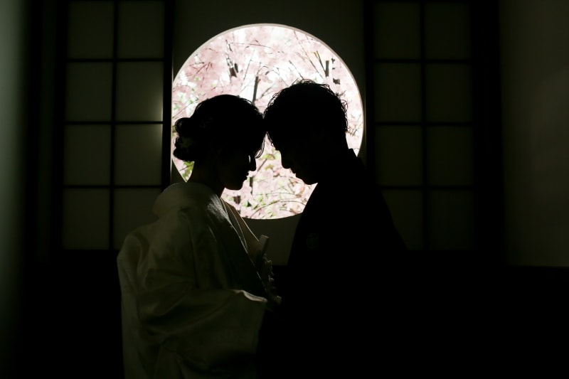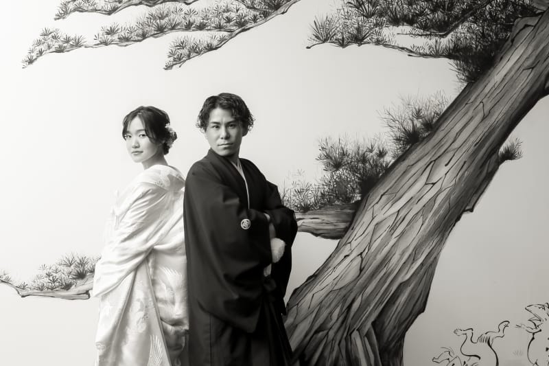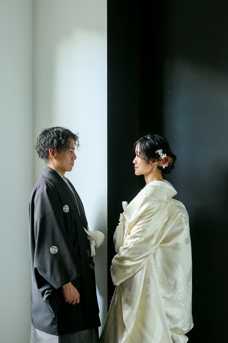 お二人がお召しになっている色と背景色を反対にする事で
