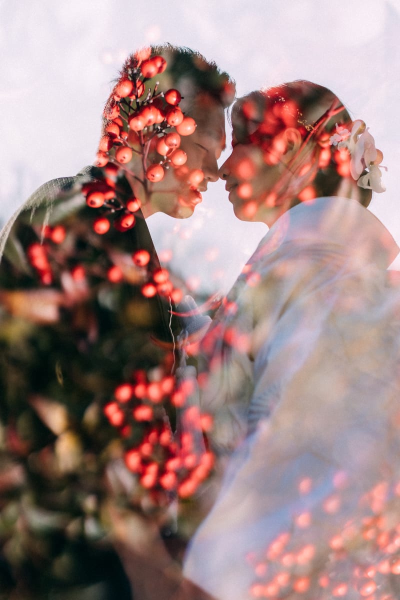 季節の植物と合わせた幻想的なカットに