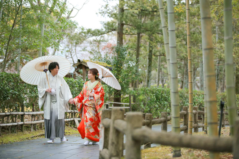 和装前撮りで、大人気の綺麗な竹林もおふたりで楽しく撮影しましょう!