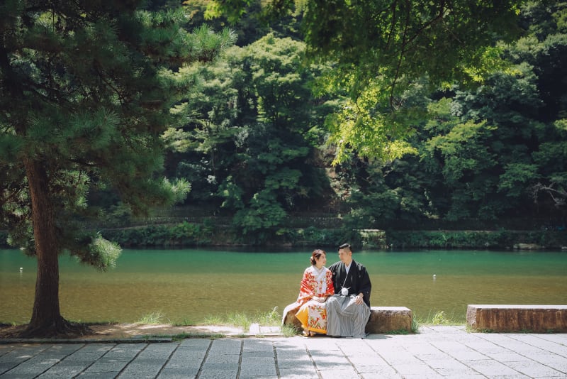 京都の嵐山の雄大な自然をお二人のウェディングフォトに一緒に表現しましょう。近い未来にお二人でアルバムを開いていただいたときに、その時の空気感や風の音なども一緒に思い出せるようなそんなお写真です。