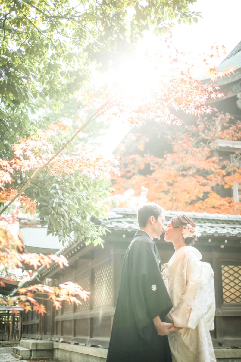 京都の秋の紅葉はとってもきれいで、和装の前撮りやフォトウェディングにとっても人気なんです。寺社仏閣のなかでも密かな穴場!?での、色鮮やかな紅葉を感じながら一生の思い出に残るフォトウェディングや前撮りはいかがでしょうか。