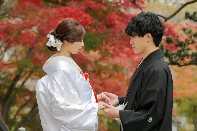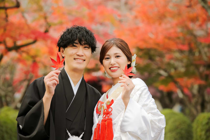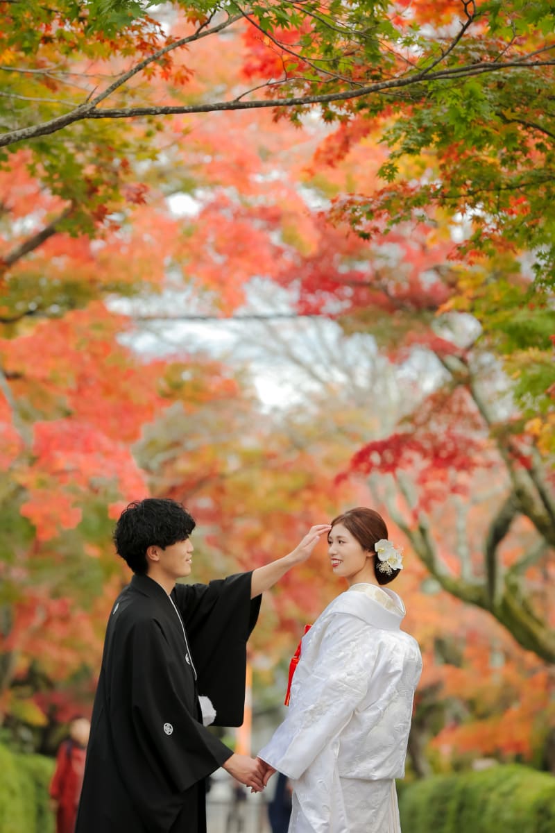 和装と紅葉の組み合わせは、京都らしさも感じられて相性バッチリです◎