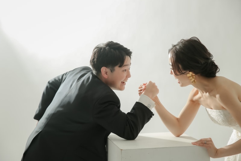 急に始まる腕相撲大会も、お二人らしさ満載ですてきです^^