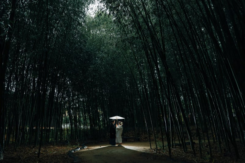 竹林の中にお二人だけが照らされ、なんともロマンチックな1枚!