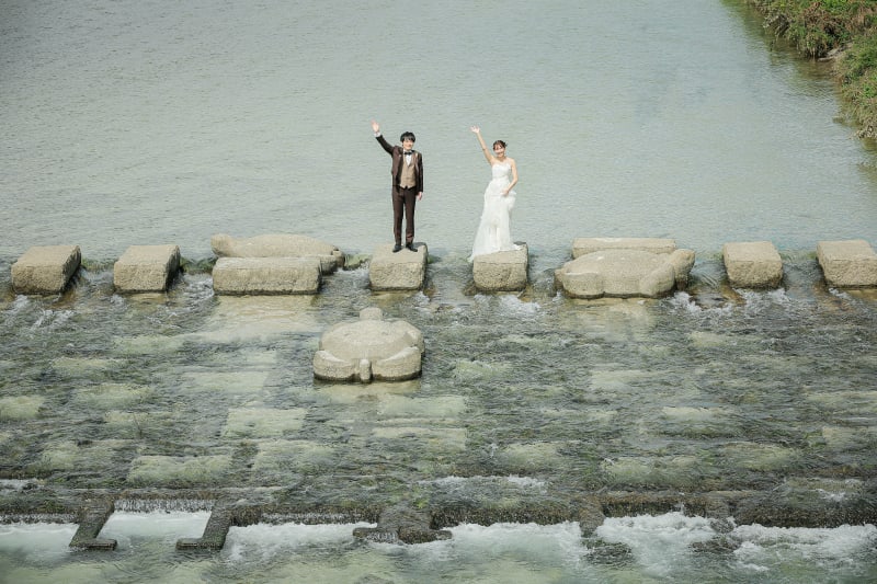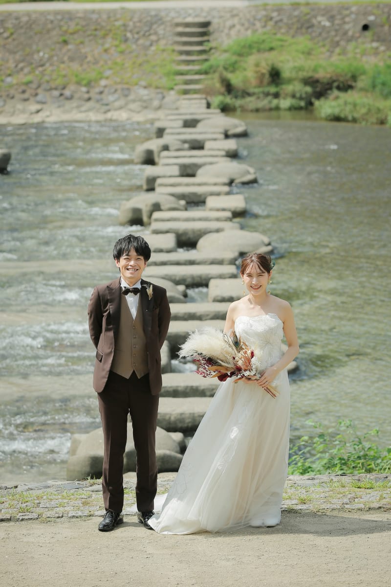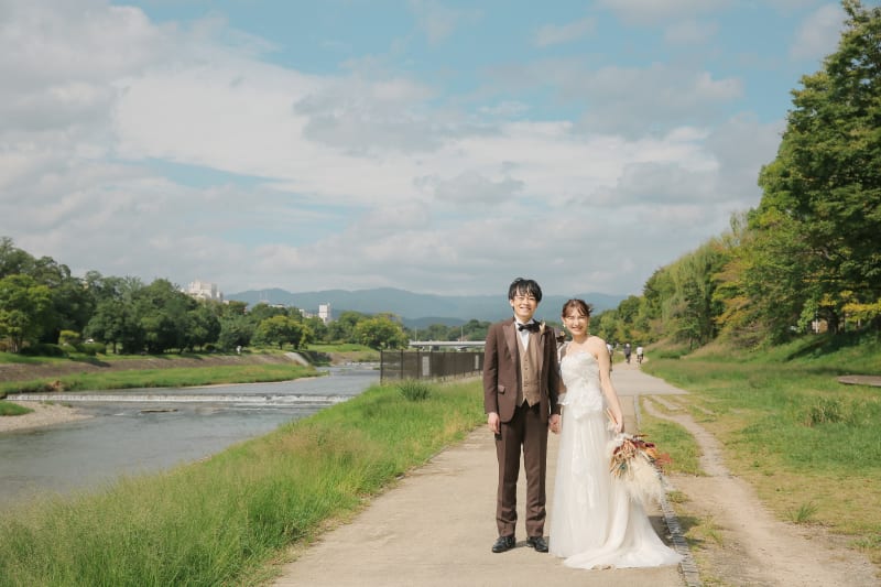お二人の思い出の鴨川でのロケーションフォト
