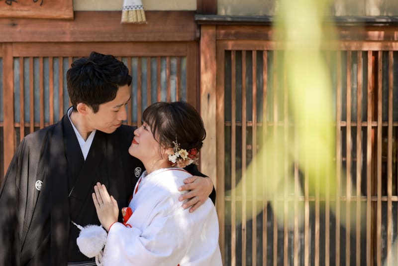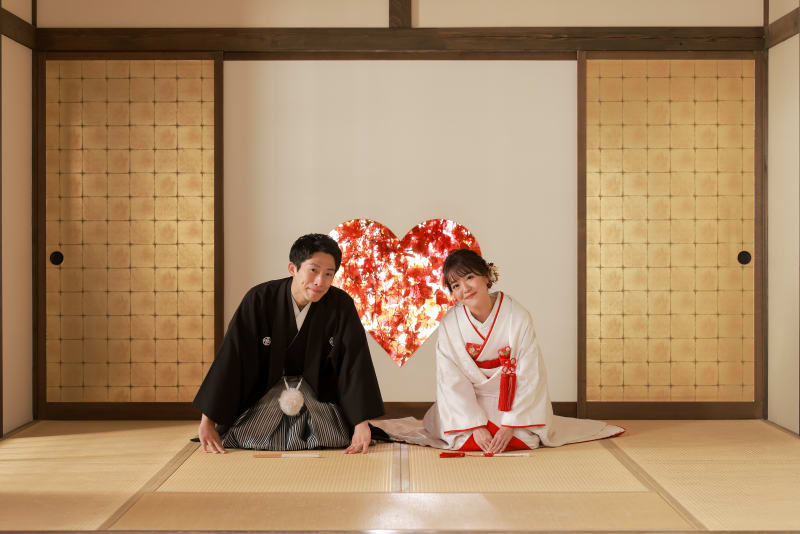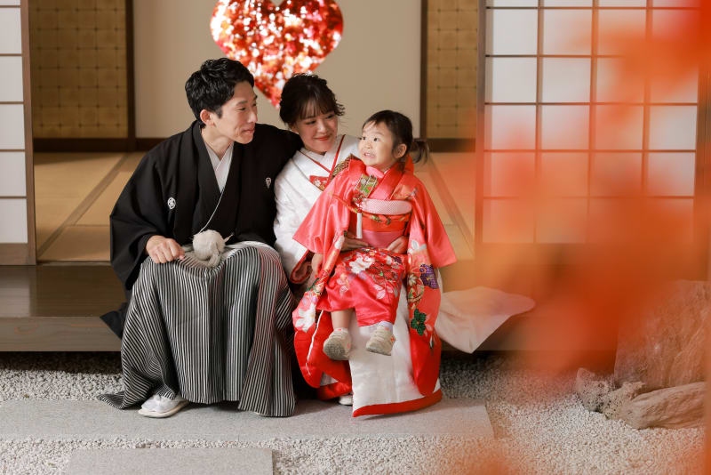 店内に備えた屋内庭園スタジオでは猪目窓を背景にお好きな季節感の中で撮影していただけます。