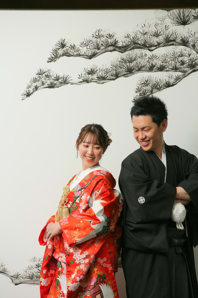 墨で書かれた松をバックにすることで和の雰囲気はもちろん、和装の艶やかさが引き立ちます◎