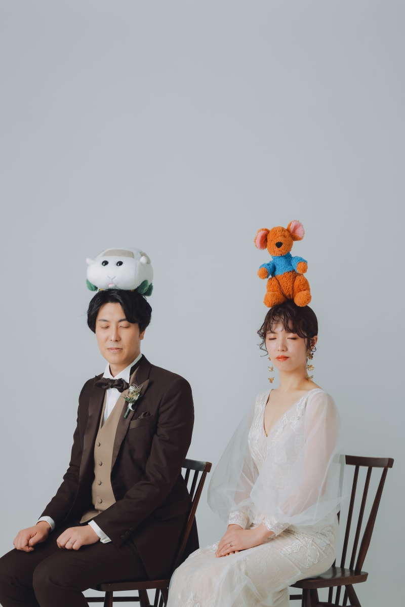 シンプルな真っ白な背景だからこそ、お二人の個性が輝きます。