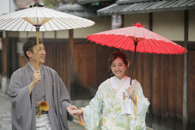 雨の日でも和傘を使いながらのロケーション撮影ができます!!