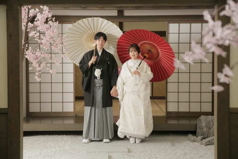 季節関係なく桜や紅葉を使って撮影ができます◎今回は桜を先取りしてのお写真!