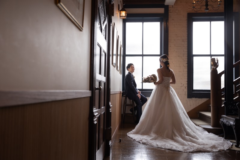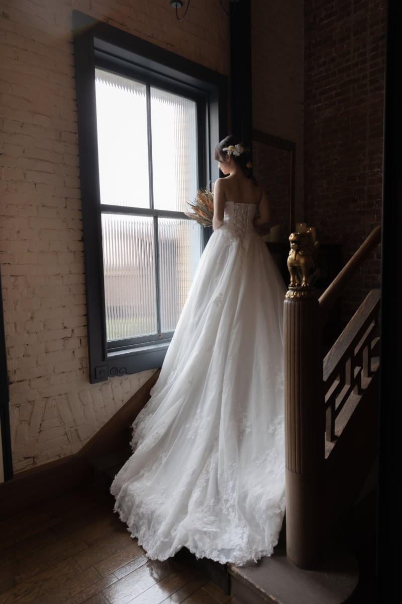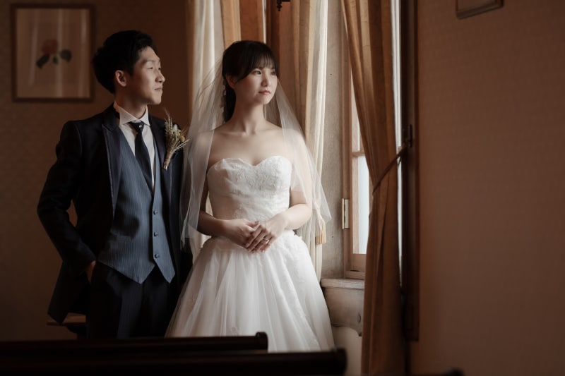 窓から差し込む、柔らかな光がご新婦様を包んでいますね。