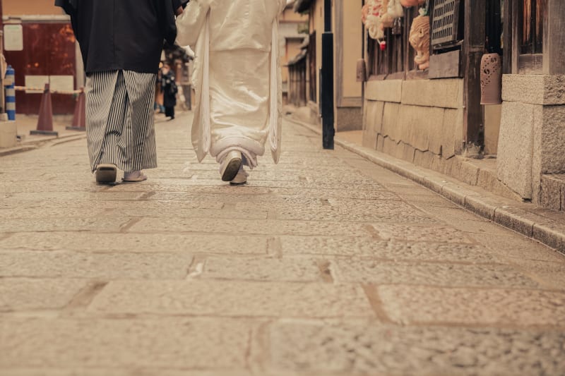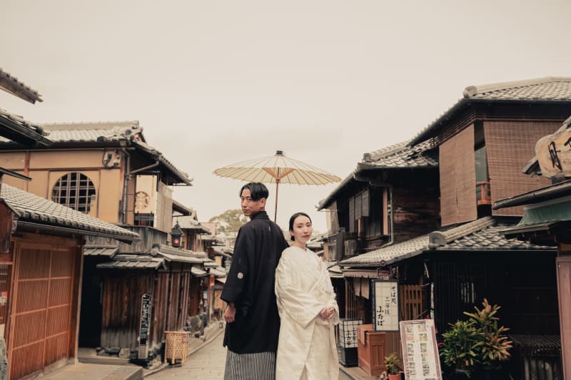 和を感じさせる街並みの中、凛々しく立つおふたり!雰囲気があって格好良いですね◎