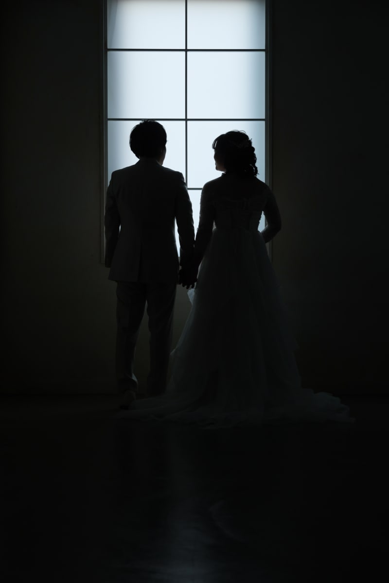 ドレスのトレーンに光が透けている所や、衣装の広がりや形がよりよくわかる1枚です
