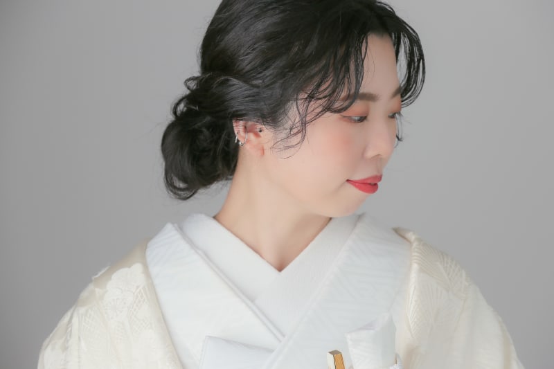 白無垢姿に紅の色が大人な雰囲気の新婦様。いつもと違うお衣装に、普段お使いのアクセサリーをミックスするのも