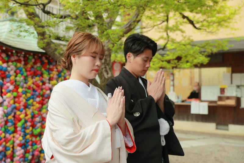 庚申堂での1枚。撮影をする前に必ず手を合わせます。おふたりのこれからを願って・・・