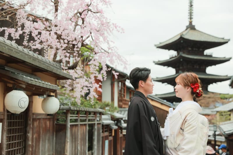 桜と五重塔のコラボレーション♪その中で撮るお二人の姿が絵になって素敵ですね♪