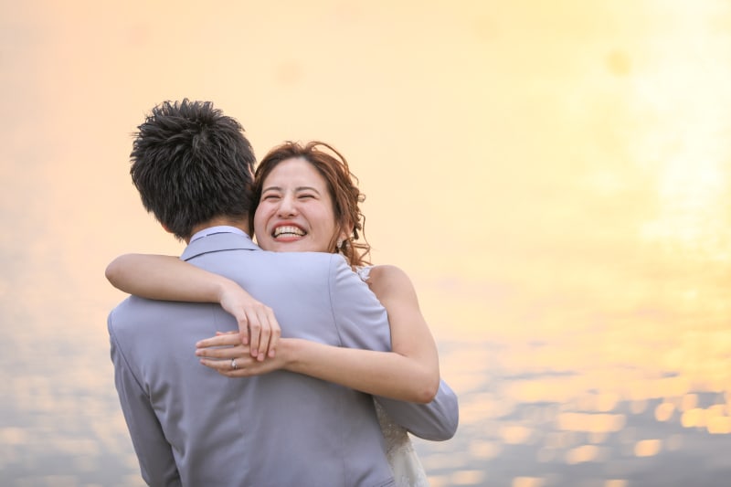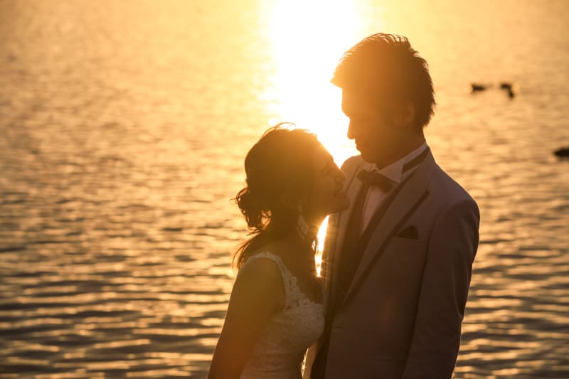 フォトウェディング 前撮り 京都 ウェディングドレス サンセット