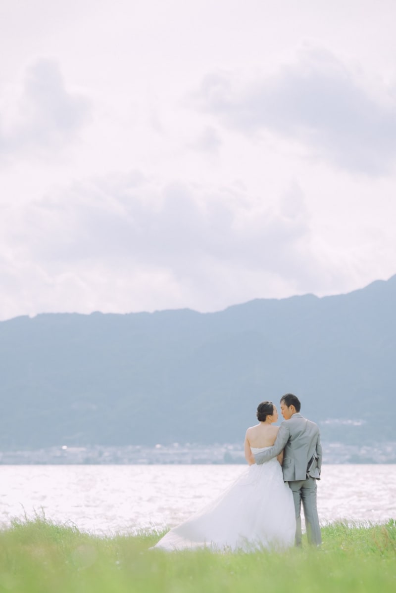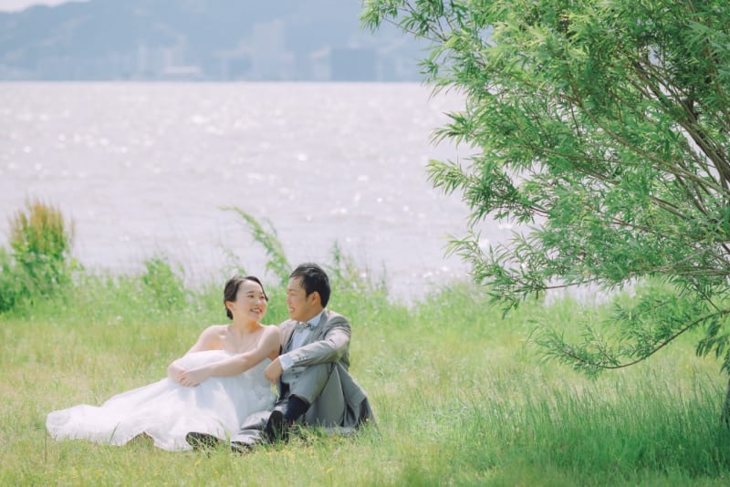 琵琶湖を一望できる場所で♪建物がないと広く遠くまで見える景色が素敵なんです♪寄り添うお二人も素敵ですね!