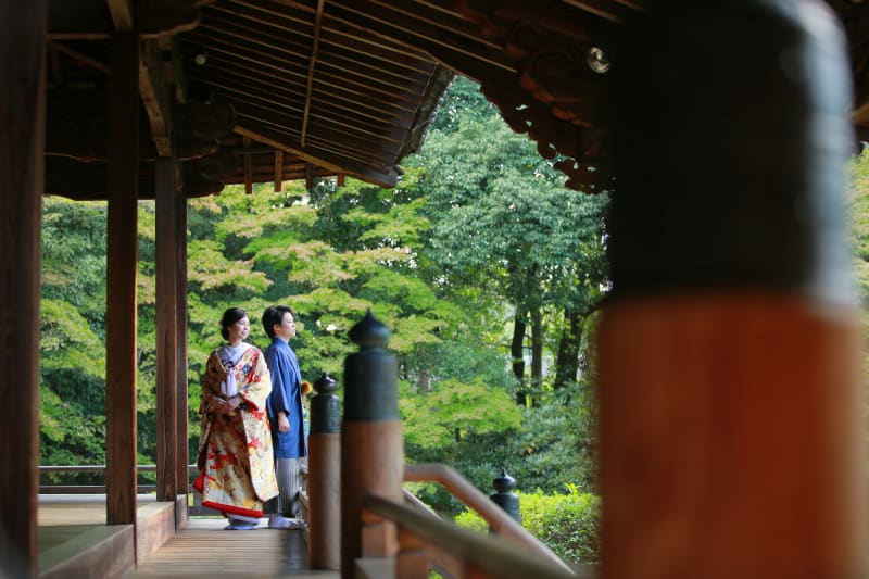 華やかで上品な打掛なので寺社仏閣にとても映える1着です。