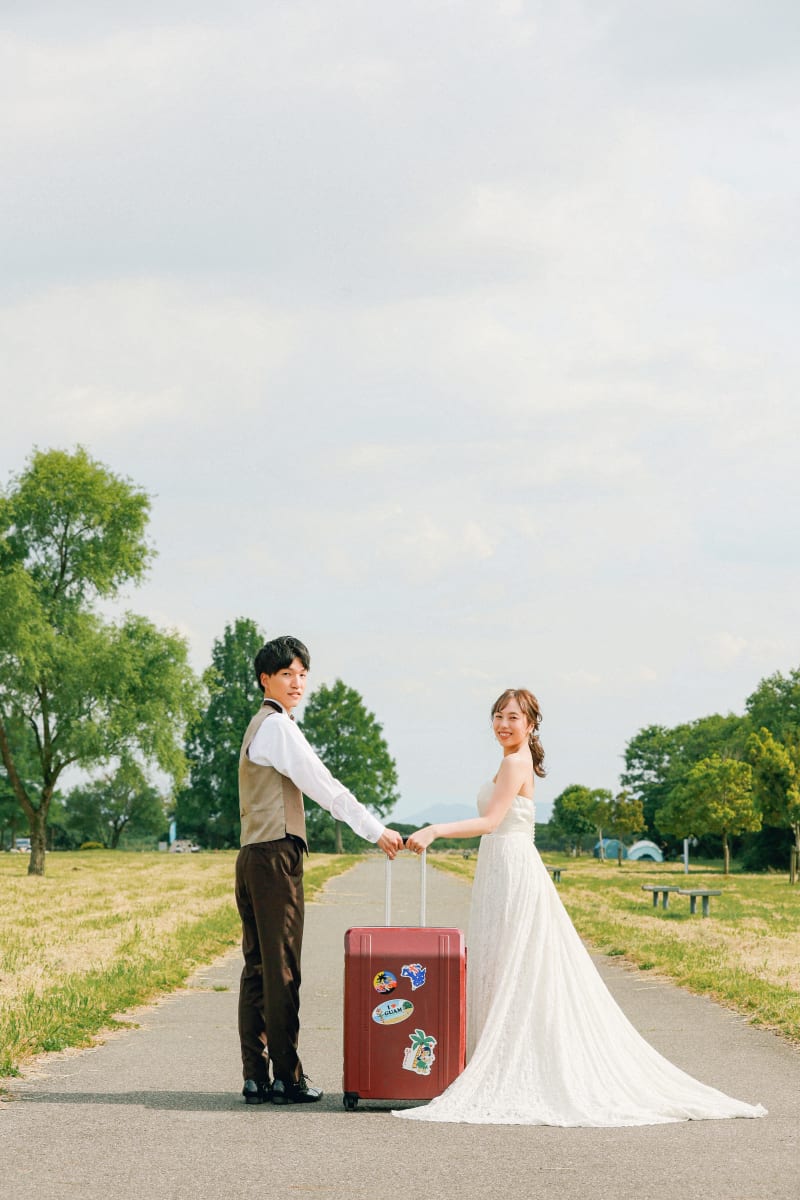 キャリーケースとウクレレがあるだけで異国に来たような、おふたりだけの空間♪音楽が聞こえてきそうです^^