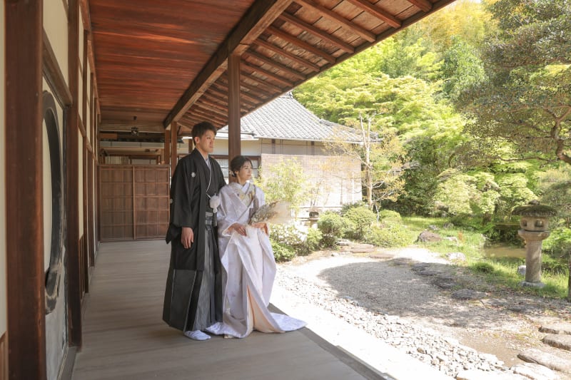 こうした屋内から撮影する際には、白無垢のお裾をおろしての撮影ができます!