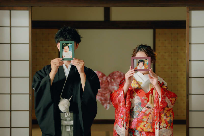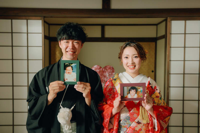 こちらはお二人の小さい時のお写真を持参しての一枚。