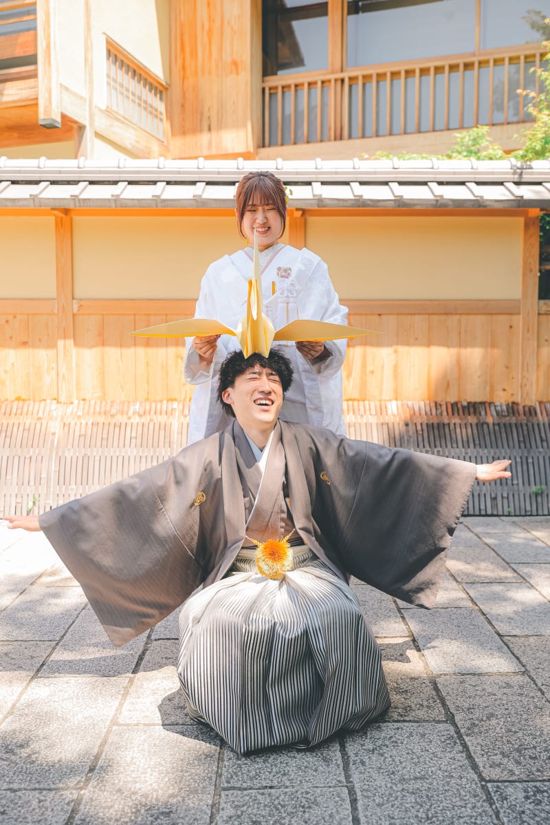 新婦様のお母様が作った鶴の折り紙を使って、おちゃめなおふたりをパシャリッ!仲睦まじい様子が伝わってきますね♪