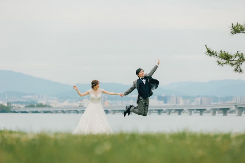 琵琶湖近くにある川も使って♪自然もまるで祝福してくれているかのような素敵な撮影になりましたよ♪