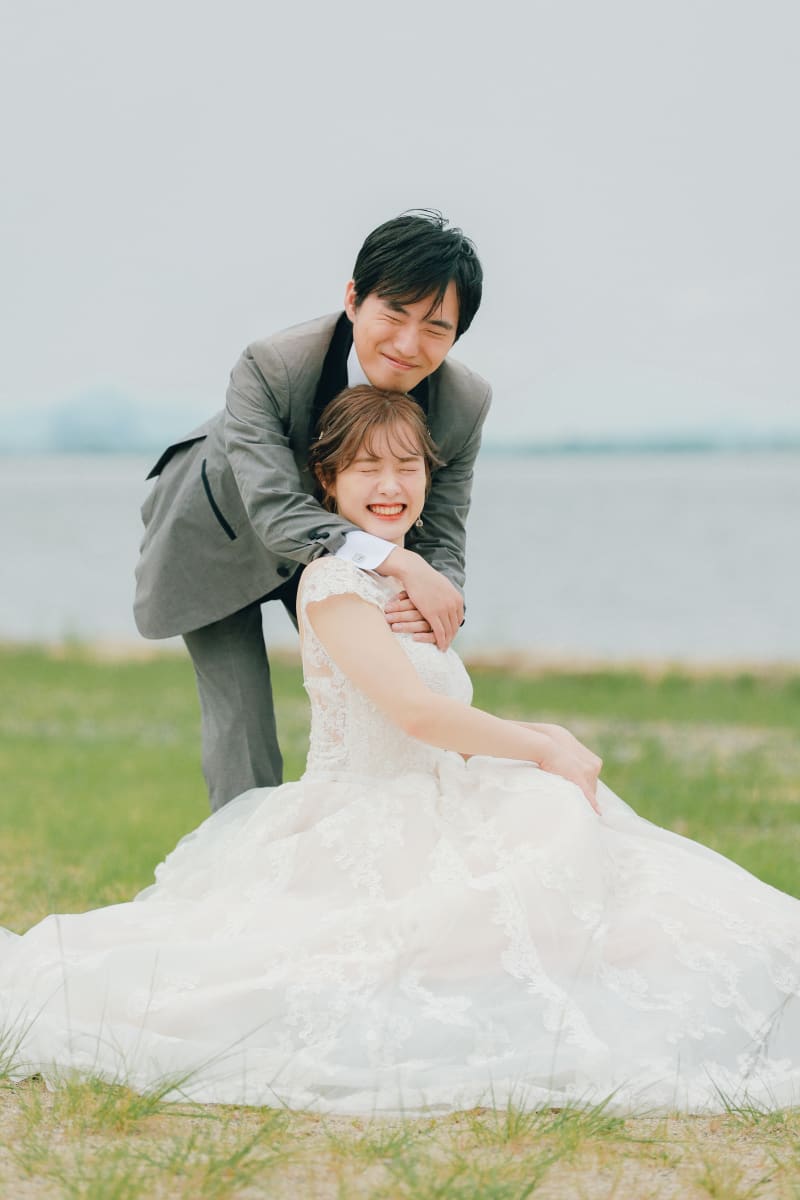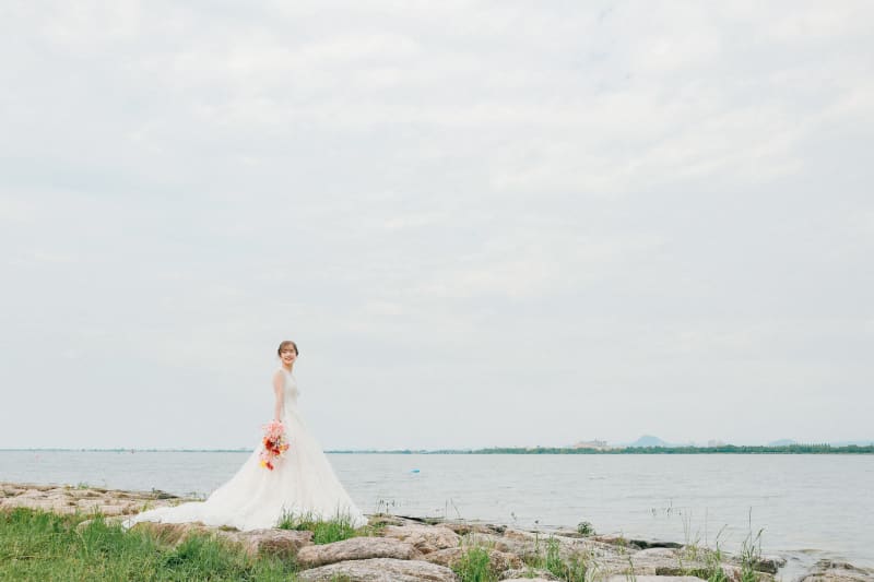 今回、ご紹介するのは【琵琶湖】での前撮り撮影♪雨上がりの日に琵琶湖で撮影したのですが、