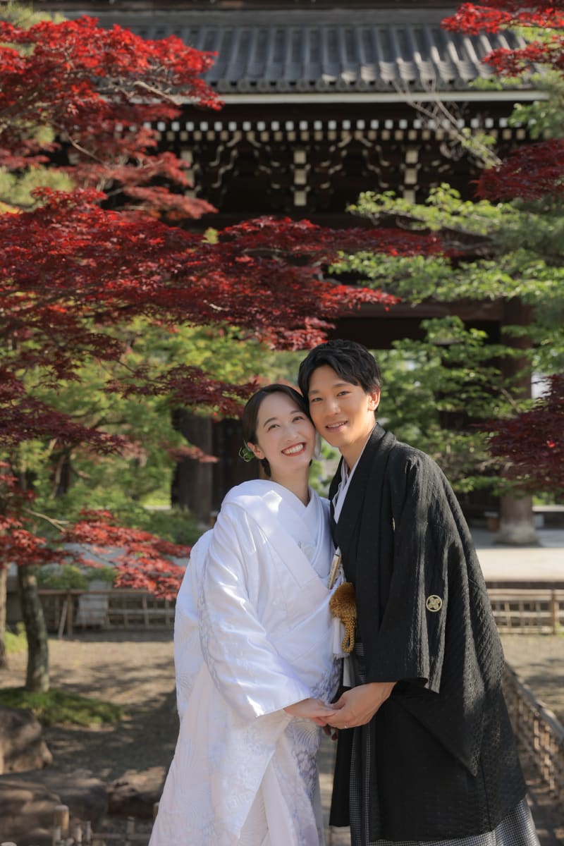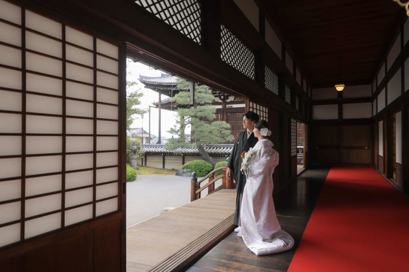 そんな歴史ある寺院で美しいロケーション、白無垢の鶴の刺繍には決まった相手と生涯添い遂げるという意味が込められているそうですよー(^^)