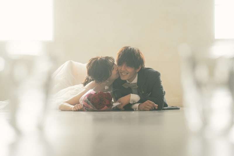 手前にグラスを置くことでその間から見えるおふたりがはっきりと♪ LOVE溢れてます♡