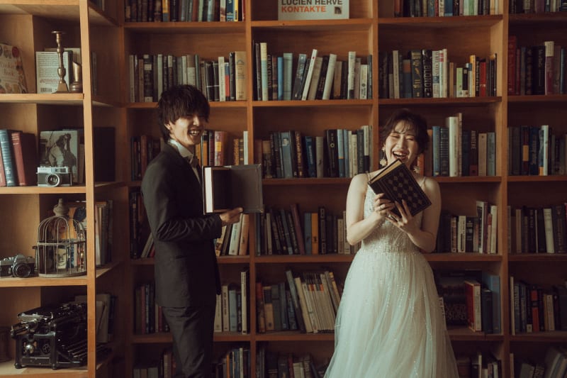 ハウススタジオにある大きな本棚の前で・・・まるで図書館で談笑しているかのようですね♪