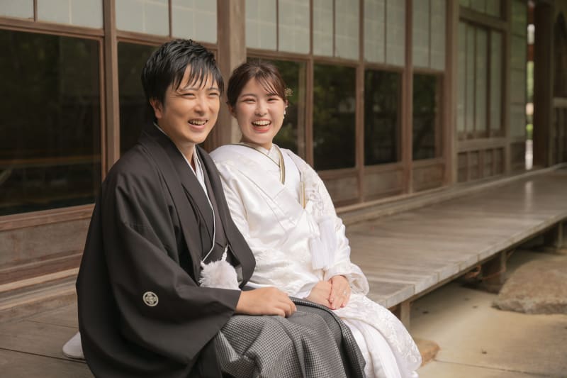 緊張もほぐれてきての縁側はなんだかほっこりしますね!笑顔も素敵なおふたりです♡
