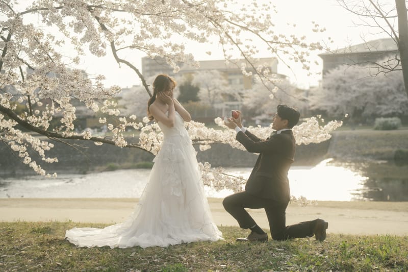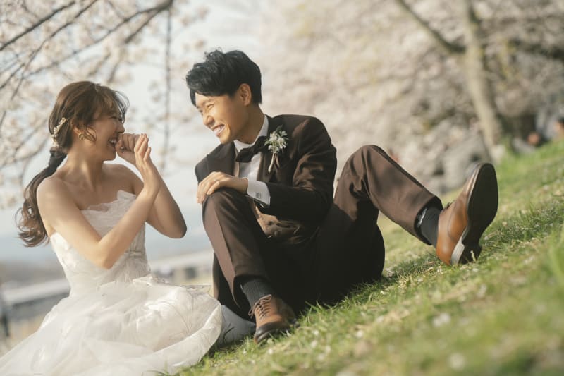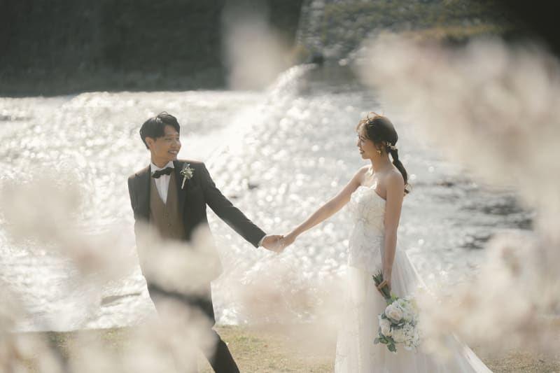陽に桜が照らされて輝いていますね♪春の温かさを感じながらの2ショットは素敵でした♪