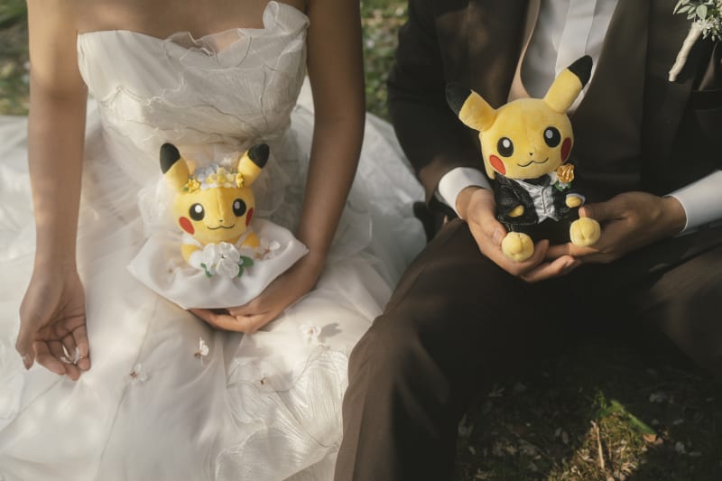 タキシードとドレスを着たピカチュウ、とっても可愛いですね(๑>◡<๑)♪おそろいのおめかしです♡