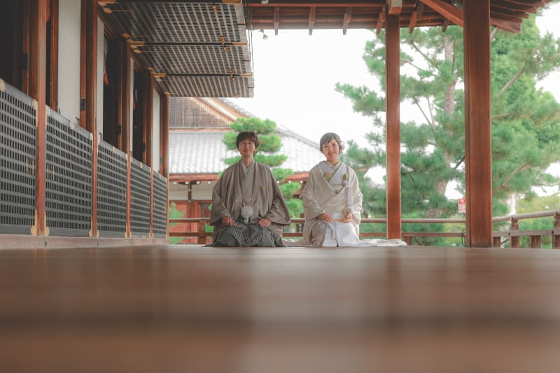 大覚寺の外観や景色も入れながら撮れるスポット♪ 結婚のご挨拶などにも使っていただけますよ^^
